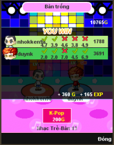 Anh em ai chơi cái này chưa? Cho ý kiến cái nào? Nếu thấy hay thì pm phát để thử game... Hehe... Mệt quá nên trích dẫn nguyên cục cho anh em ai đọc thì đọc Game music city - thành phó của âm nhạc - Nghe nhạc đọ tài năng Bạn là người đam mê âm nhạc, bạn muốn thể hiện bản thân, muốn để mọi người thấy được tầm hiểu biết cảu bạn, Hãy đến với music city - thành phố âm nhạc . Tải về music city - thành phố âm nhạc music city - thành phố âm nhạc là phiên bản mở rộng thích hợp với nhiều dòng điện thoại(mobile) cụ thể là các dòng điện thoại chạy java như s60, s40, s60v*. Các điện thoại như nokia, samsung,lg, soniericsion,... Các bạn tải game link dưới: Thanh Pho Am Nhac - music city online Giới thiệu music city - thành phố âm nhạc Năm mới 2013 sắp đến, mọi người nên thử phiên bản mới hoàn toàn này của music city - thành phố âm nhạc. Hãy thi thử xem tài năng hiểu biết am nhạc của bạn tới đâu nhé. Nếu bạn là vua nhạc Rap? Bạn là fan K-Pop? Hay chỉ có Rock mới là đam mê thứ thiệt? Hãy khẳng định tình yêu của bạn qua đấu trường âm nhạc hấp dẫn, bạn đã sẵn sàng để bước vào một thế giới Giải trí vô cùng sảng khoái và đầy đam mê? 1. Đấu trường âm nhạc: Các bạn sẽ phải nghe nhạc và đoán tên bài hát. Có 5 câu, mỗi câu 7 s để trả lời, Trả lời đc nhiều thì điển kinh nghiệm càng tăng. music city - thành phố âm nhạc - Cộng đồng âm nhạc đầy sôi động Luyện tập một mình với các ca khúc & ca sỹ bạn yêu thíchTận hưởng niềm vui chiến thắng với thành phố âm nhạc trực tuyến - music city online 113 thành phố âm nhạc trực tuyến - music city online 113 còn tổng hợp nhiều Mini Game hấp dẫn: Game pikachu quá quen thuộc với các bạn rồi... music city cung cấp cho bạn game pikachu online, bạn có thể thi đấu với đối phương để dành thắng lợi và nâng cao điểm kinh nghiệm Cùng test thử pikachu với thành phố âm nhạc trực tuyến - music city online 113Của hàng bán đồ cực độc, cựa cool. Bạn có thể trang bị cho nhân vật yêu thích những bộ đồ đẹp nhất, những style, kiểu giáng mới nhất trong thành phố âm nhạc trực tuyến - music city online 113 Còn rất nhiều cưa hàng khác nữa....Hãy cùng đua top vớithành phố âm nhạc trực tuyến - music city online 113. CHúc các bạn ó những phút giây vui vẻ và tìm thấy niềm đam mê của mình.
