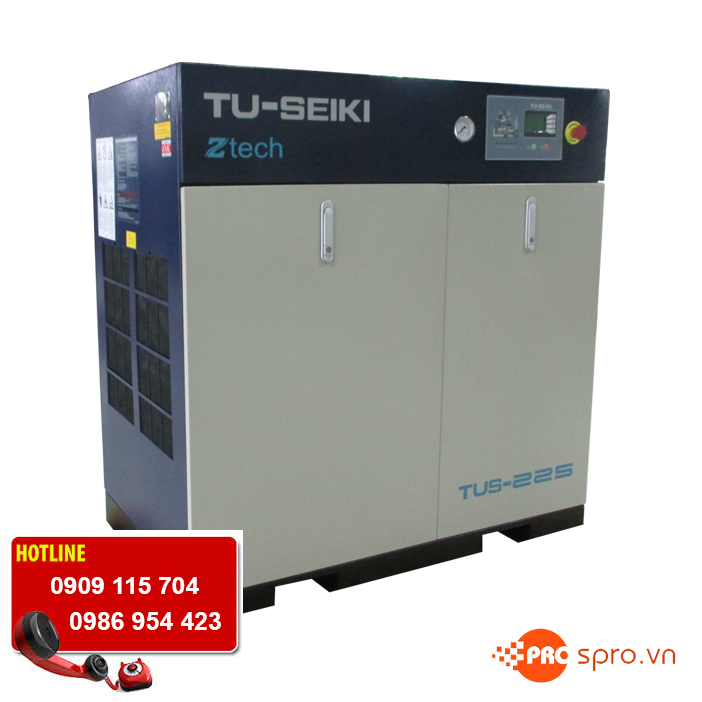 Máy nén khí trục vít của Mỹ, Nhật cho nhà máy, xưởng sản xuất, gara lớn . Máy vận hành rất ổn định, không dao động trong khí thoát, ít rung động và tiếng ồn nhỏ. May nen khi trục vít thường được sử dụng rộng rãi trong các doanh nghiệp hiện nay. SPRO.VN – Xin giới thiệu đến quý khách máy nén khí trục vít đang được sử dụng rộng rãi trong các doanh nghiệp hiện nay. - Bảo hành : 12 tháng - Giao hàng trên toàn quốc, miễn phí vận chuyển trong TP.HCM. Ưu điểm mà máy nén khí trục vít mang lại : - Làm việc ở chế độ hoàn toàn tự động - Thời gian đào tạo để vận hành máy ngắn. Có thể dễ dàng điều khiển sự hoạt động cũng như giám sát quy trình vận hành của toàn bộ hệ thống - Tất cả thông số kỹ thuật, lưu lượng, áp suất, lượng dầu, các lỗi phát sinh…đều hiển thị trên màn hình PLC nên rất dễ xử lý. - Bảo trì bảo dưỡng đơn giản,chi phí thấp,máy có thể làm việc ở chế độ cao và liên tục. MÁY NÉN KHÍ TRỤC VÍT 1. Máy nén khí trục vít FUSHENG SA-15A THÔNG SỐ KỸ THUẬT - Áp lực họat động 8 Bar - Lưu lượng khí cấp 2.3 m3/ phút - Loại máy trục vít ngập dầu - Cách giải nhiệt : Dàn giải nhiệt bằng quạt gió, truyền động bằng động cơ độc lập. - Công suất động cơ 15 kW ( 20HP ) - Hệ thống khởi động : Star - Delta (03 contactor) - Điện áp làm việc 380 V- 3pha - 50 HZ - Nhiệt độ khí nén ra khỏi máy : Nhiệt độ môi trường + 15 độ C - Kích thước máy 85 x 122 x 130 cm - Trọng lượng 560 Kg * Xem giá và chi tiết sản phẩm : spro.vn/may-nen-khi-truc-vit-fusheng-sa-15a.html 2. Máy nén khí trục vít TU- SEIKI TUS-225A1 THÔNG SỐ KỸ THUẬT - Công suất mô tơ 22 Kw (30 HP) - Dãy áp suất làm việc 7.0 – 9.5 Kg/cm2 - Lưu lượng 4.3 m3/phút - Nhiệt độ làm việc 2 – 45 0C - Phương pháp khởi động SAO-TAM GIÁC (3-Contactor) - Phương pháp truyền động : Trực tiếp bằng Coupling (1:1) - Phương pháp điều khiển : Tiết kiệm điện bằng AUCS và chế độ tự tắt / mở hoạt động máy (2 chế độ chọn trên màng hình : Load/unload & On/off khi đạt áp suất) - Công suất quạt giải nhiệt 1.1 KW - Điện áp 380 V/3 pha/50 Hz - Kích thước 1100 x 85 x 140 cm (RxDxC) - Độ ồn 54 dB - Trọng lượng 620 KG * Xem giá và chi tiết sản phẩm : spro.vn/may-nen-khi-truc-vit-tu-seiki-tus-225a1.html Chúc quý khách một ngày tốt lành ! MỌI CHI TIẾT VUI LÒNG LIÊN HỆ Mr Biển (0909 115 704 ) - Mr Phú ( 0986 954 423 ) SPRO.VN - KÊNH MUA SẮM THIẾT BỊ CÔNG NGHIỆP, DÂN DỤNG TRỰC TUYẾN Địa chỉ : 143 Bình Lợi (Nơ Trang Long nối dài) P. 13, Q. Bình Thạnh, TP. Hồ Chí Minh Điện thoại: 08 3553 4298 - Fax: 08 - 35 534 310 Email: hotrospro@gmail.com Website: Spro.vn