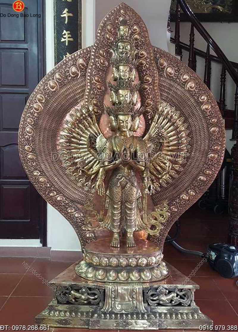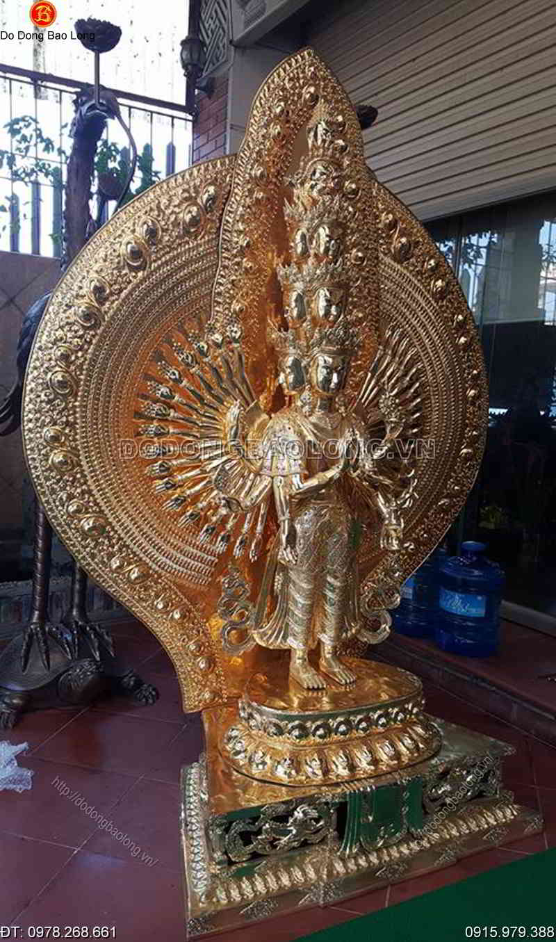 Quý khách quan tâm, có nhu cầu đặt hàng xin liên hệ trực tiếp: Cửa Hàng 1: 621 La Thành - Ba Đình - Hà Nội Cửa Hàng 2: 277 Nguyễn Trãi - Thanh Xuân - Hà Nội Xưởng sx: Tống Xá - Ý Yên - Nam Định Hotline: 0978 268 661 - 0915 979 388 Giới thiệu sản phẩm: Pho Tượng Quan Âm nghìn mắt nghìn tay bằng đồng được đúc thủ công bằng đồng đỏ cao hơn 2m đặt thờ cúng trong chùa. Phương tượng phật đúc trực tiếp tại xưởng đúc đồng làng nghề Ý Yên Nam Định, tượng được đúc dựa theo khuôn mẫu đắp bằng đất sét, sau khi đúc xong còn trải qua quá trình đánh bóng làm nguội rất tỉ mỉ để cho sản phẩm đạt được sắc nét, mặt tượng phải thật đẹp và có hồn. Pho tượng cao hơn 2m nặng khoảng hơn 1 tấn đặt ở những nơi đền chùa có quy mô và không gian rộng. Tượng có thể để nguyên bản màu đồng đỏ hoặc cao cấp hơn được thếp vàng 9999 toàn bộ: Một số hình ảnh: Pho tượng Phật Quan Âm nghìn mắt nghìn tay bằng đồng đỏ đúc thủ công Các hoa văn mặc dù nhiều nhưng được làm rất tinh xảo. Pho tượng phật Bà cao hơn 2m là pho tượng cỡ lớn Tượng phật bà nghìn mắt nghìn tay thếp vàng 9999 cao cấp rất đẹp Ngoài các sản phẩm tượng Bác Hồ bằng đồng cơ sở Bảo Long cũng đúc tượng đồng các anh hùng dân tộc, nhân vật lịch sử, … và đúc tượng bán thân bằng đồng, đúc tượng chân dung bằng đồng của ông bà, cha mẹ, người đương sống hoặc đã khuất. Cơ Sở Tượng Đồng chúng tôi chuyên cung cấp các sản phẩm đồ đồng mỹ nghệ, nhận đúc tượng đồng lớn công trình quốc gia, tượng đồng cho đền chùa theo yêu cầu.