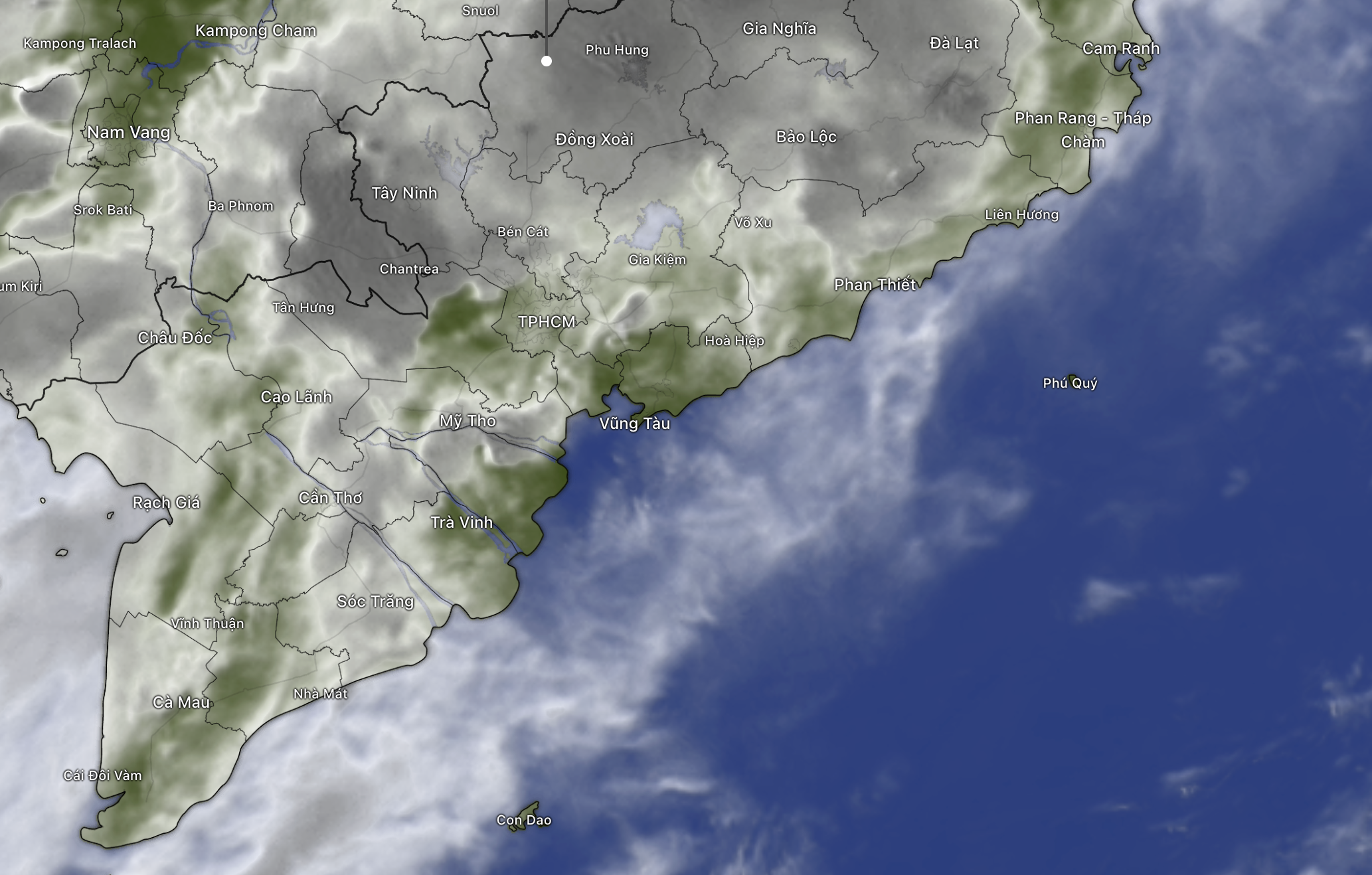 Đài khí tượng thủy văn Nam Bộ cho biết theo dõi trên ảnh mây vệ tinh, ra đa thời tiết và định vị sét cho thấy vùng mây dông đang phát triển và gây mưa kèm dông, sét trên khu vực xã Cần Giờ, phường Tân Phước, xã An Thới Đông, phường Phú Mỹ, phường Tân Hải, xã Xuân Hòa, xã Thường Tân, xã Bắc Tân Uyên, xã Phú Giáo, xã An Long, xã Trừ Văn Thố, xã Phước Thành, xã Minh Thạnh.